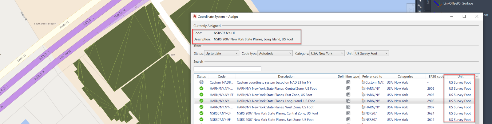Die obige Abbildung von ArcGIS Pro zeigt das Koordinatensystem, das in Civil 3D unter Verwendung von US Survey Foot-Einheiten zugewiesen wurde.