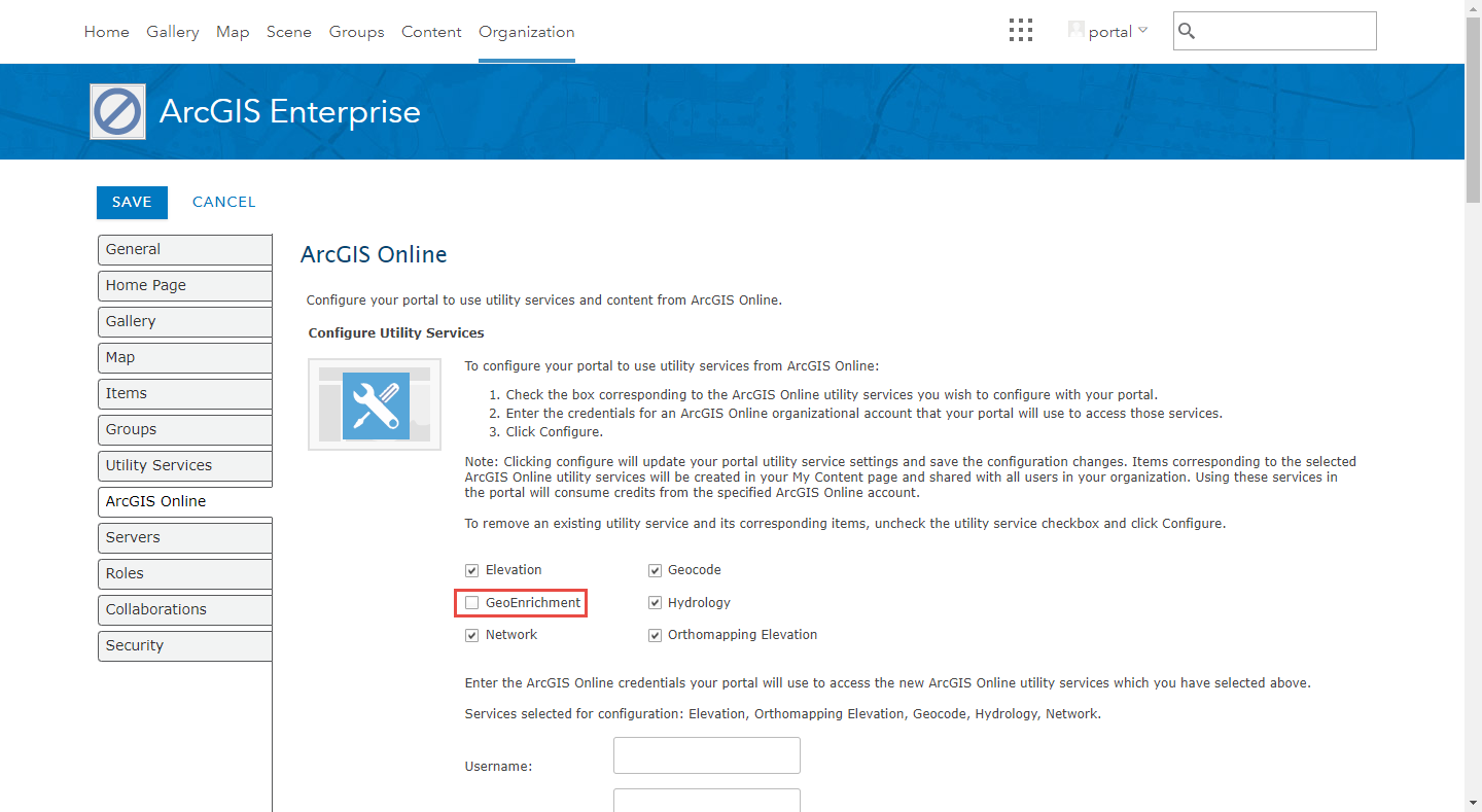 Actualice las credenciales de ArcGIS Online y restablezca los servicios de utilidades de geoenriquecimiento siguiendo los pasos que se indican a continuación: