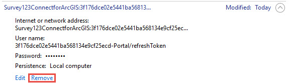 移除凭据管理器中的 Survey123 Connect for ArcGIS 凭据